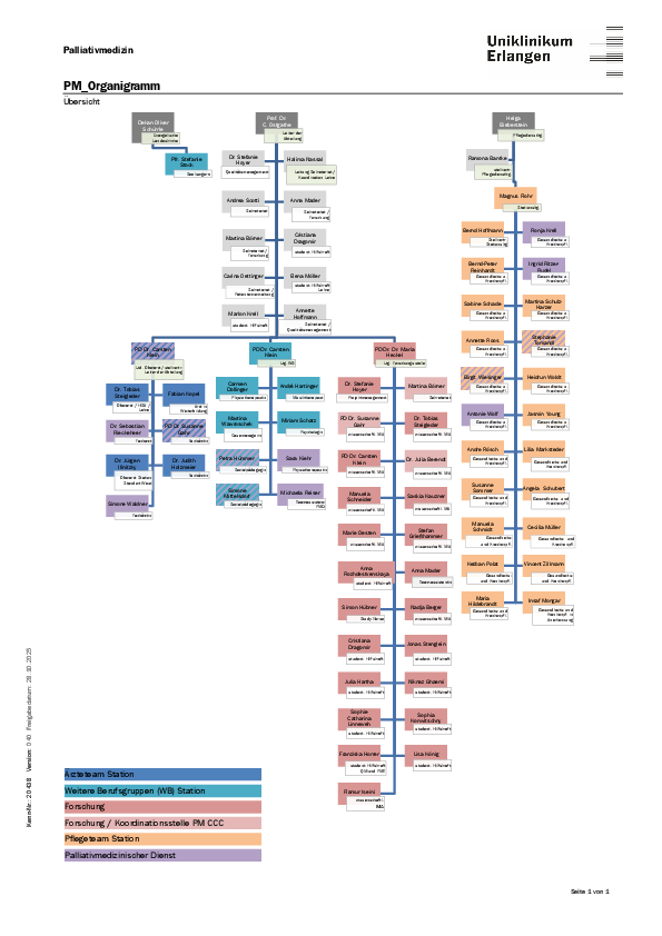 Palliativmedizin PM_Organigramm Übersicht Prof. Dr. C. Ostgathe Dekan Oliver Schürrle Helga Bieberstein Leiter der Abteilung Evangelische Landeskirche Dr. Stefanie Hoyer Pfr. Stefanie Stock …